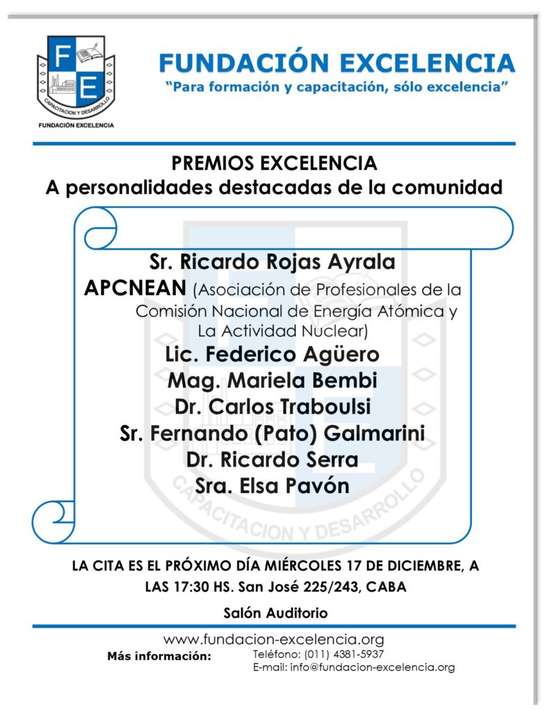 El día 17 de Diciembre de 2025, la Fundación Excelencia realizó la entrega anual del Premio Excelencia a personalidades destacadas de la comunidad.